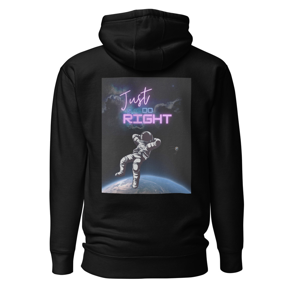 Show off your unique style with the Just Do Right SpaceMan Hoodie. This black cotton hoodie is perfect for any occasion, from a chill day at home to an evening out on the town. The hoodie features a classic fit and a drawstring hood, and it has a retro-style graphic of an astronaut soaring through space on the front. Get ready to look good and feel great in this stylish hoodie!