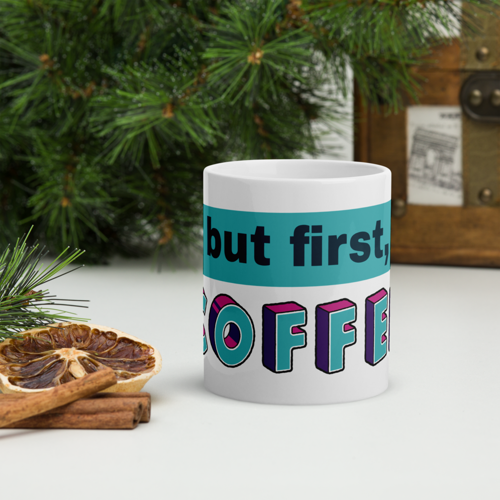 Start your day off right with the But First Coffee Mug. Crafted from premium ceramic, this 11oz mug is designed to keep your coffee warm and cozy as you prepare for the day ahead. The red heart and inspiring message will lift your spirits and make you smile every time you use it! Perfect for sipping your favorite morning beverage, the But First Coffee Mug is sure to become a favorite companion.